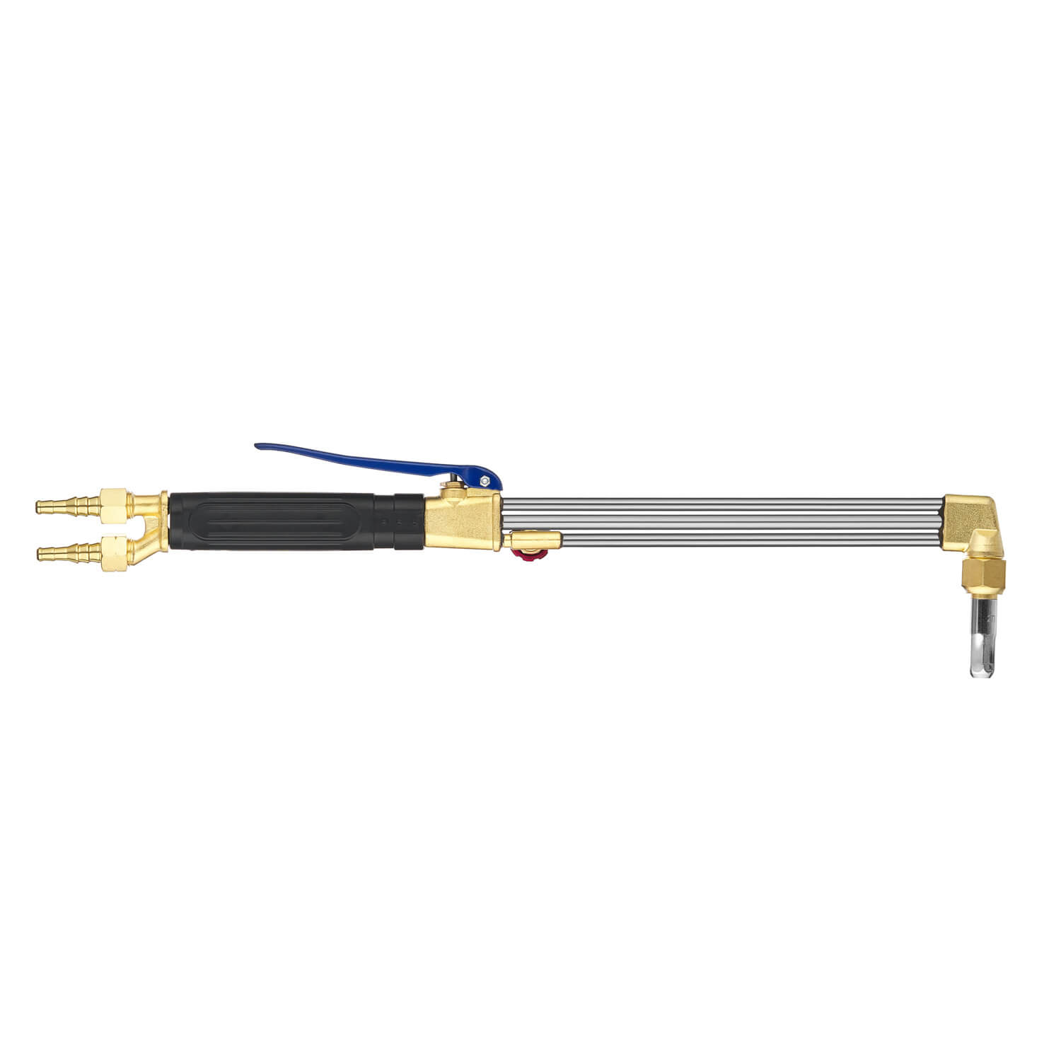 Универсальный резак Р3-01К предназначен для кислородной резки металлов толщиной до 150 мм и оснащён системой внутриголовочного смешения газов. Он подходит для работы с пропаном и ацетиленом, выбор которых зависит от установленных мундштуков. Резак оборудован клапаном кислорода режущего (КР) и комплектуется пропановым мундштуком №2П, а также ниппелями и накидными гайками.